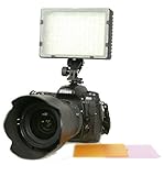 This super lightweight 160 LED video light panel great for video and photography. Item can be used in video taking, either for lights setup or supplement. Fully dimmable light panel able to go from 0-max. One of the best value on the market. Comes with 3 filter to soften light and change color temperature. Also this led panel able to take up to 5 different kind of batteries. -Compatible with five different kinds of battery: Panasonic CGR-D16S, Sony NP-FH70, NP-FM55H, NP-F550 and AA battery. -Easy to know the battery capacity: press the test button, 4-LED On means battery full, 1-LED On means battery low. -There are three filters included with this item, one white filter to soften the light (diffuse effect); the other two warm filter to reduce the color temperature. -Rotate switch be use to on/off and adjust the brightness. -Hotshoe design can be attached to the video cam or DC ...Read more